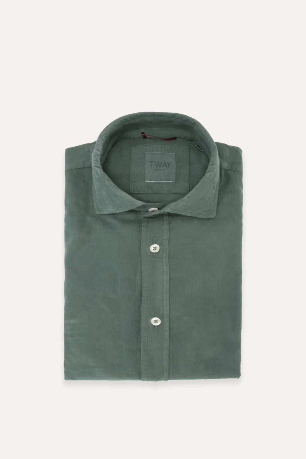 Camisa de micropana en verde con efecto lavado, con cuello sin botón.