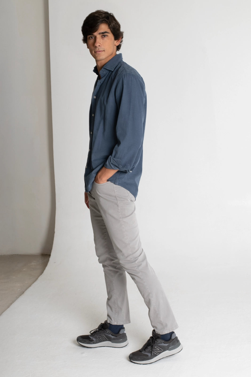 CAMISA DE MICROPANA AZUL OSCURO LAVADO