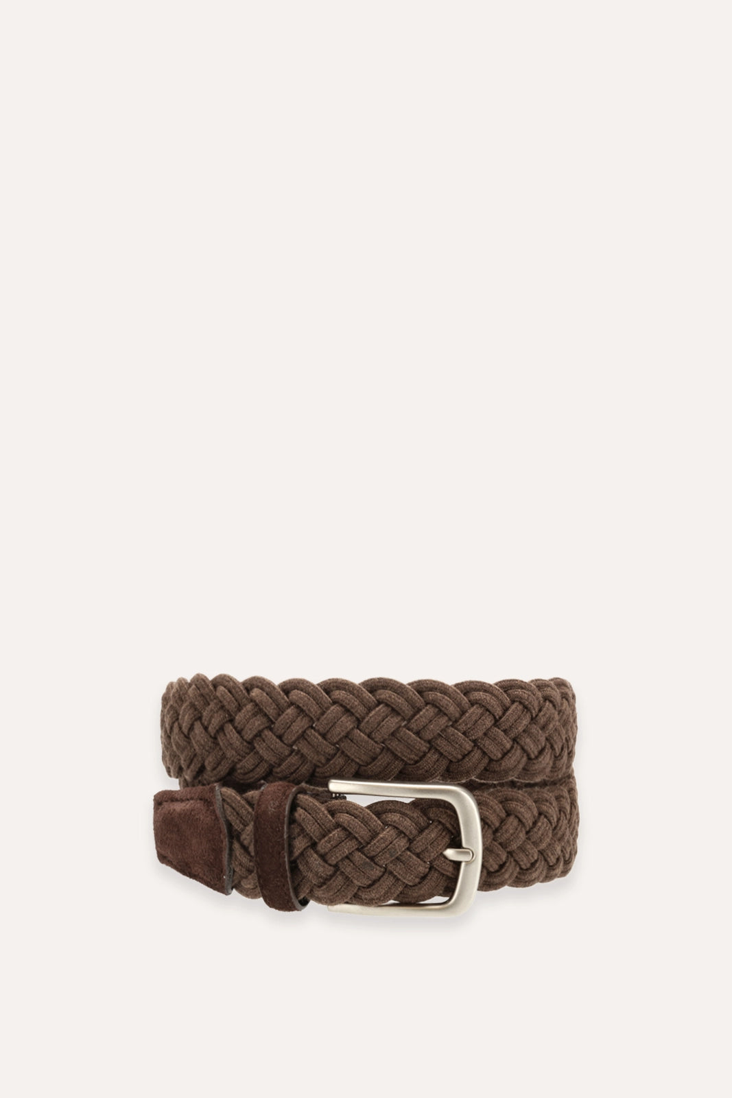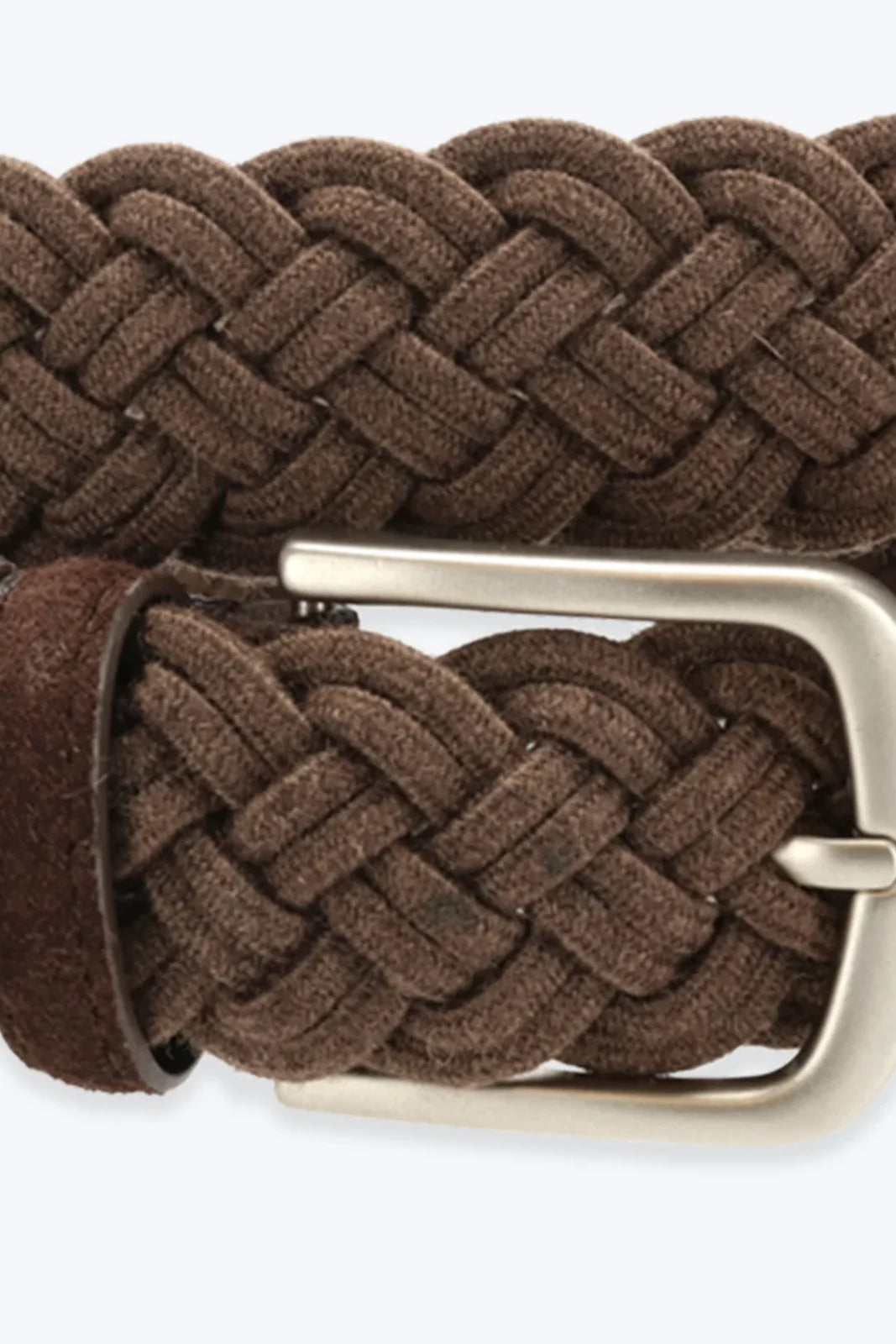Cinturón elástico con trenza doble y plana en algodón marrón.