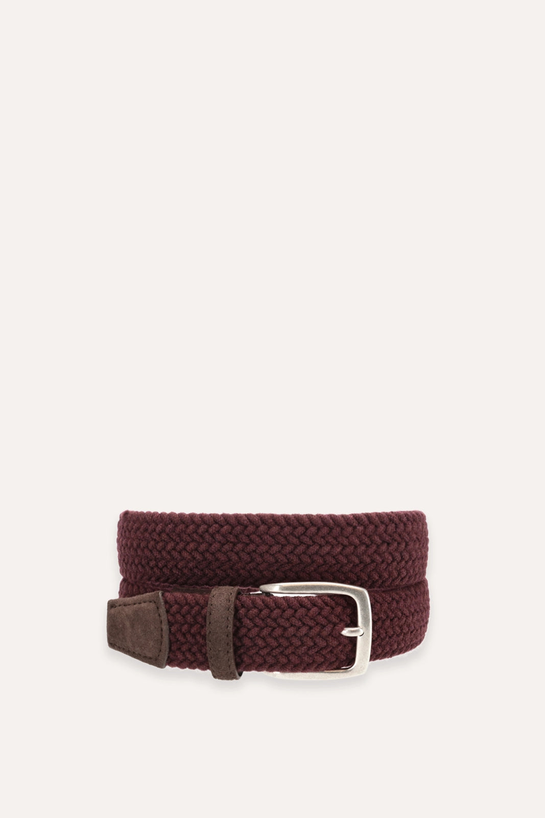 Rematado en ante marrón, con hebilla metálica en color plata vieja.