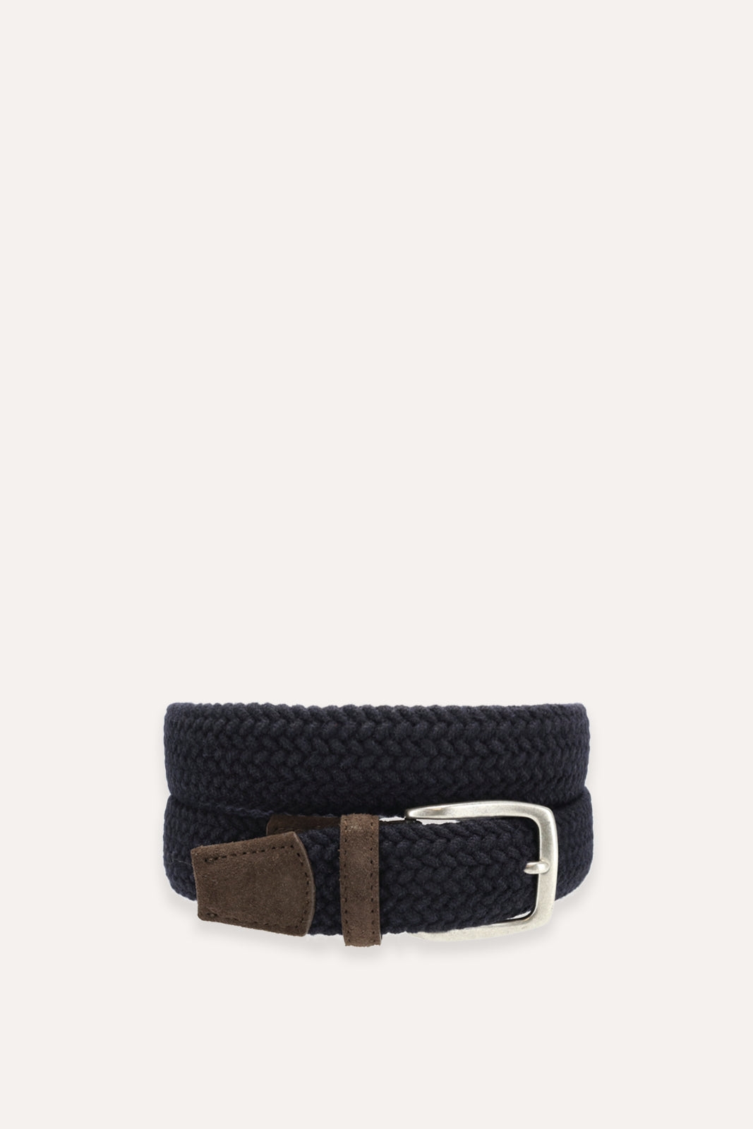 Rematado en ante marrón, con hebilla metálica en color plata vieja.