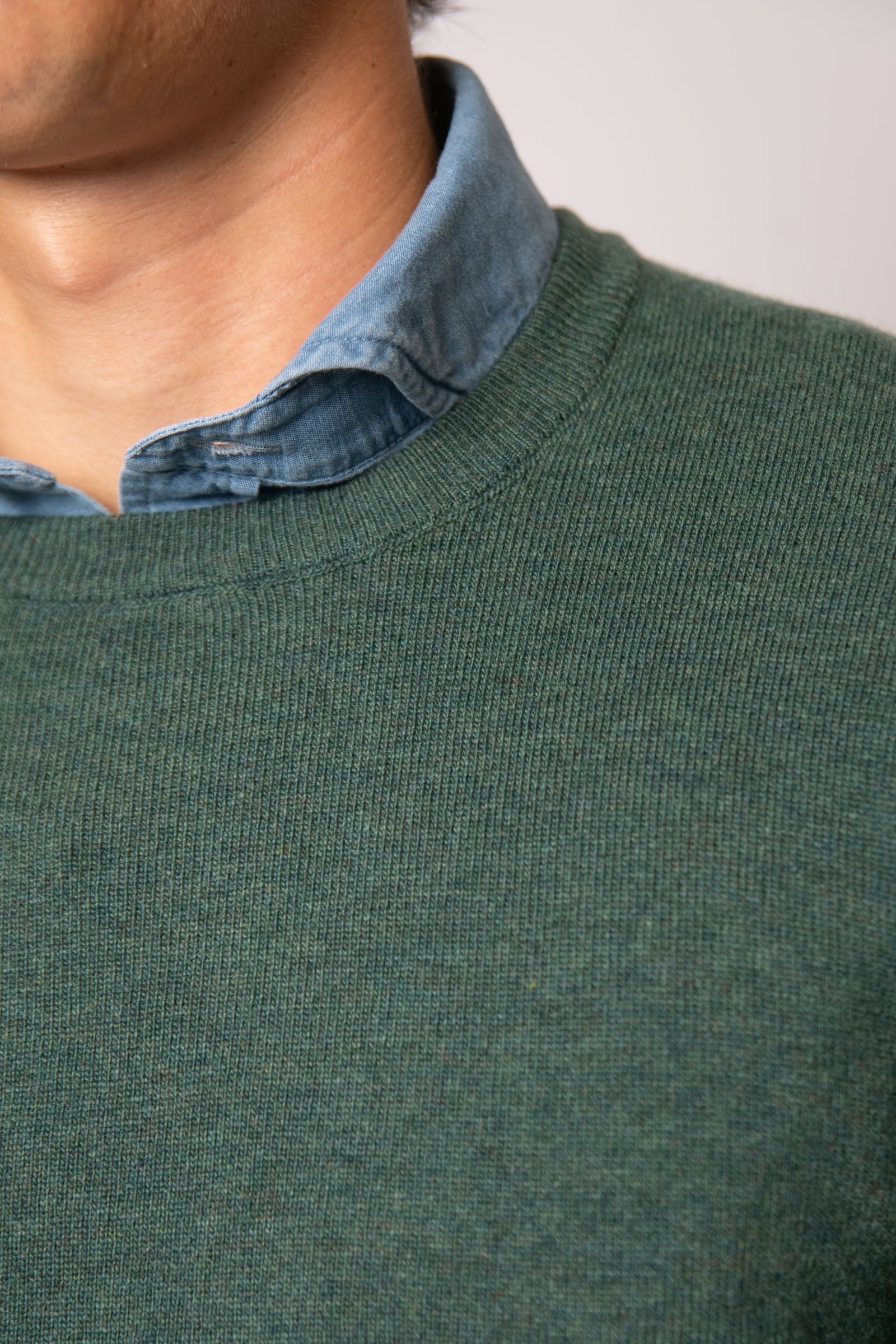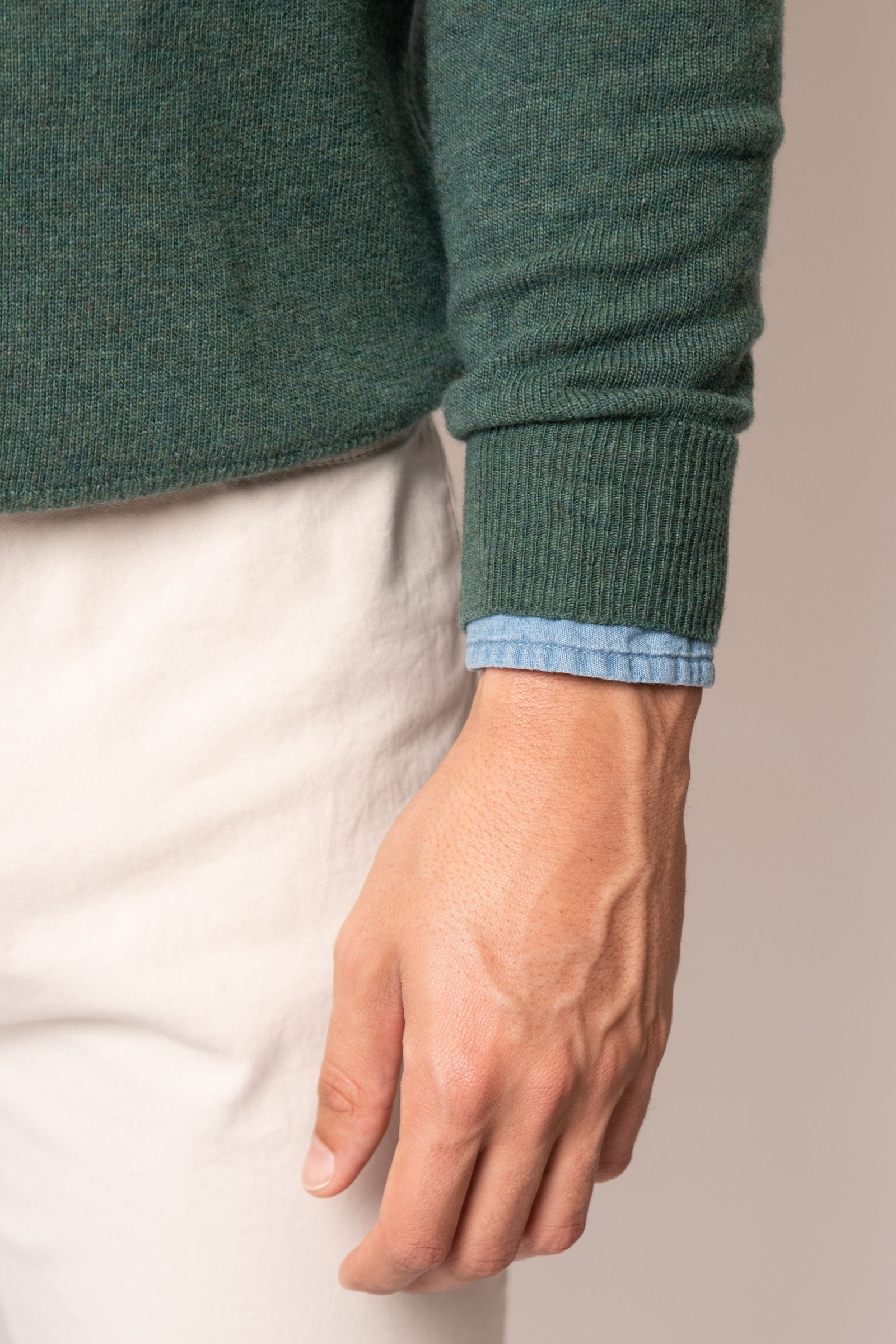 Jersey de lana con cuello a caja de un color verde súper favorecedor.