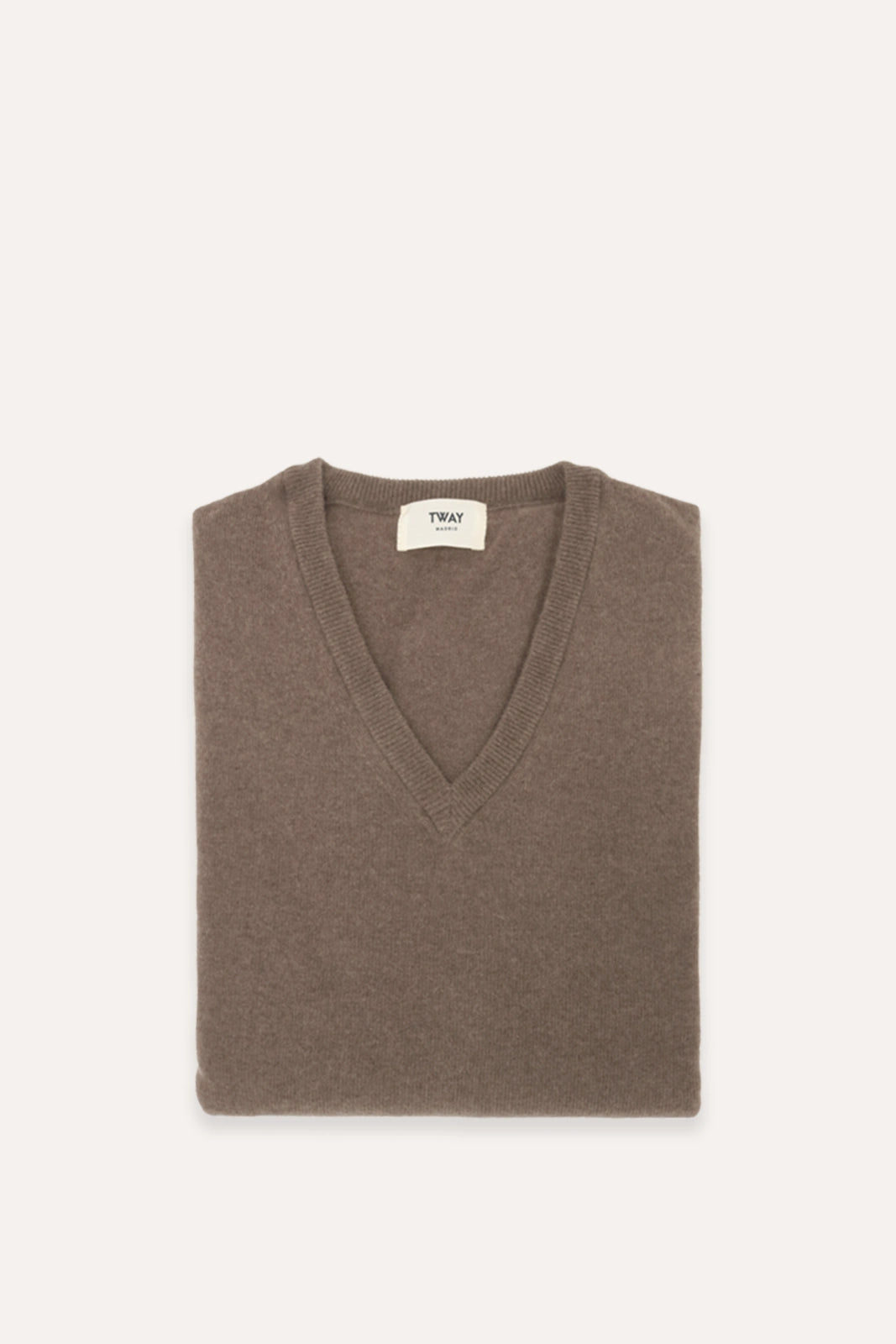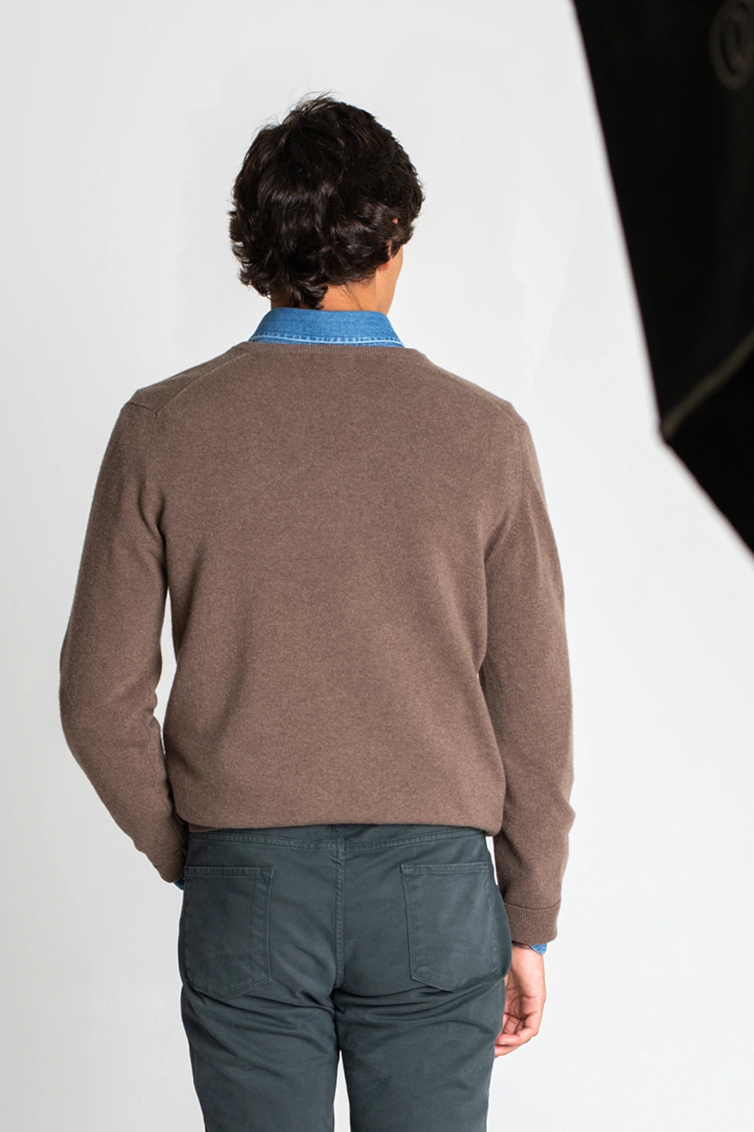 Jersey de lana con cuello en pico de un color tabaco, muy otoñal.
