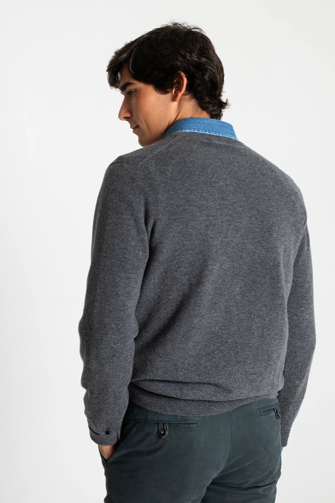 Jersey de lana con cuello redondo en gris, un color que va con todo y no te puede faltar.