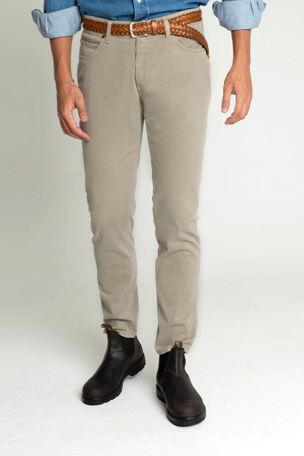 Pantalón 5 bolsillos en color piedra, que combinan con todo, sin ser los cásicos pantalones de color beige.