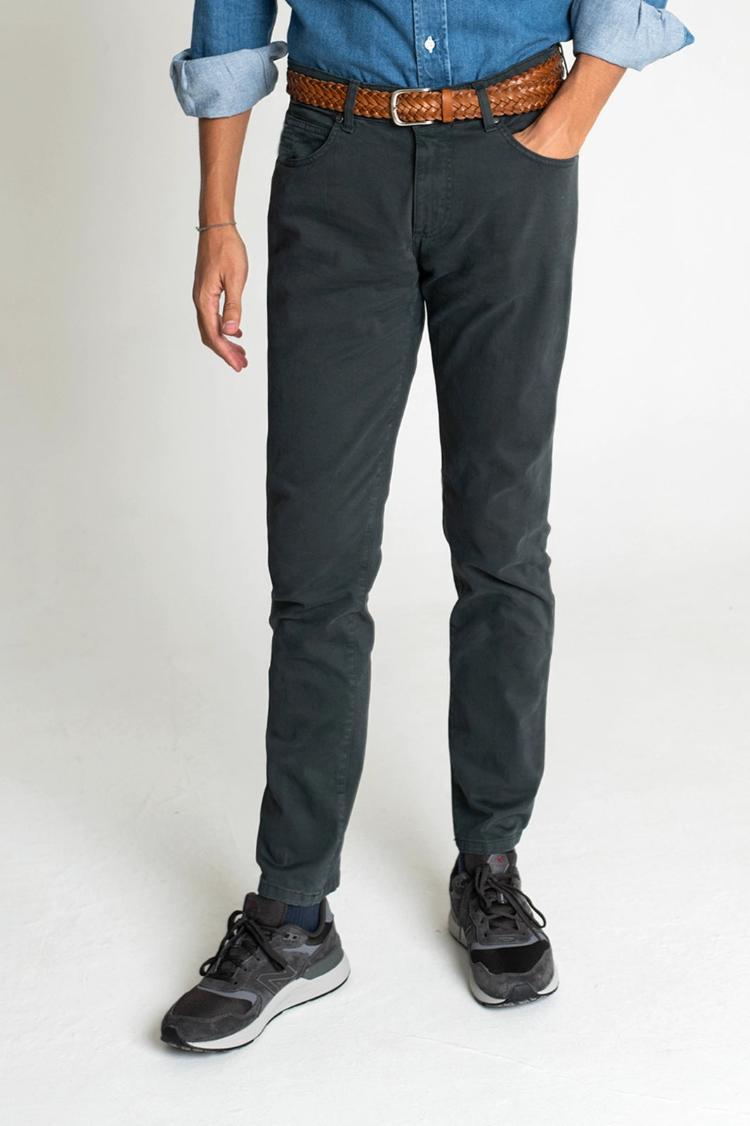 Pantalón 5 bolsillos en verde azulado oscuro, un color muy especial, para salirte de los tonos clásicos y darle un aire diferente a tu look.
