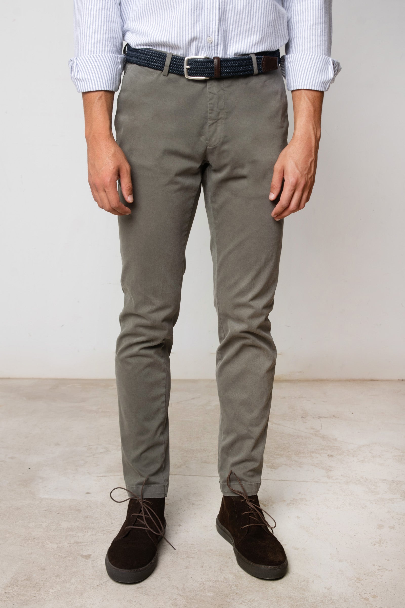 Pantalón chino en color gris verdoso.